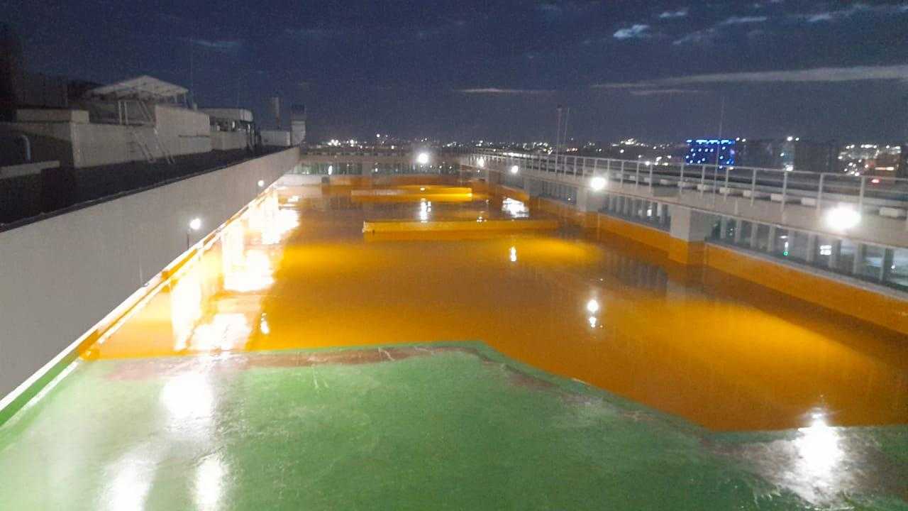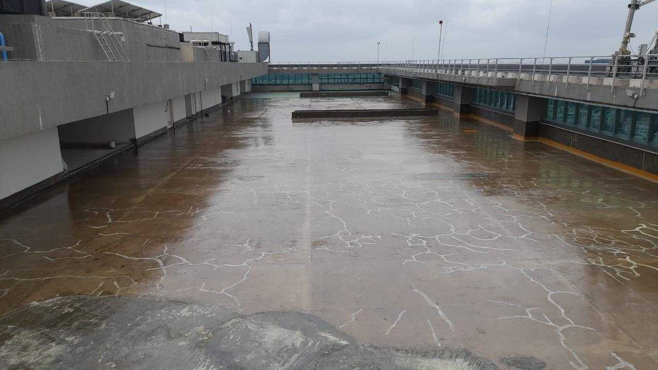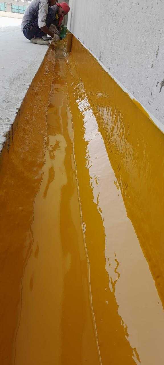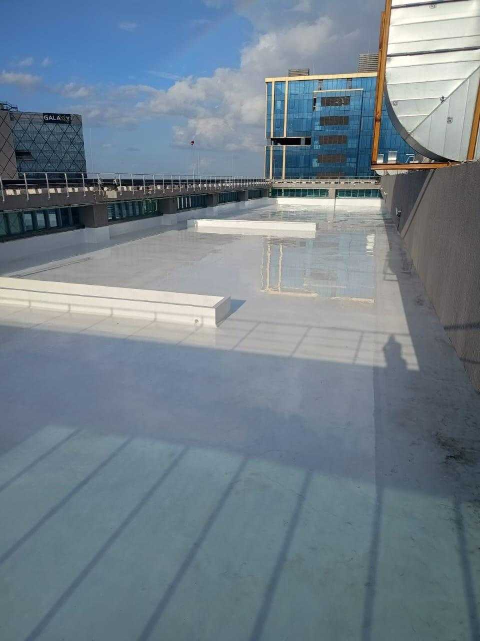 The project involved multiple stages of application, including primer coating, hybrid polyurea application, and polyurethane treatment. Special attention was given to floor and parapet wall joint treatments to ensure complete waterproofing integrity.